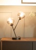 Learn moreAdd a touch of industrial style and character to your home with this black metal table lamp. Featuring a two way design with smoked glass lampshades. The in-line rocker switch provides convenient control, making it easy to illuminate your space. Transform your room easily with this simple yet stylish design. Perfect for adding a minimalist touch to your living space. Requires 2 x LED 4W SES E14 bulbs (not included).