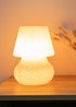 Learn moreIntroduce elegance to your living space with this peach glass table lamp. The in-line on/off switch provides convenient control, making it easy to illuminate your space. Elegantly crafted, this pin stripe lamp is perfect for illuminating any room in your home. A simple yet stylish finish to any room. Requires 1 x LED 4W ES E27 bulb (not included).