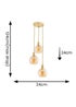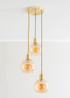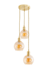 ValueLights Bellamy Amber Glass Globe 3 Drop Cluster Brushed Gold Ceiling Pendant Light