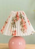 Our cordless lamp adds a pop of colour to your home and makes a real statement in your personal space. The pink ceramic base comes complete with a floral tapered shade. Featuring a touch button to turn the warm white light on/off and dim the light brightness. Simply charge the lamp and use it anywhere. This rechargeable lamp comes complete with a 1M USB charging cable. Please Note - The recommended charging time for full charge is 5 hours to get 7 hours glow time. Requires bulb with E27 fitting