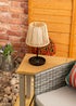 Take your living space outdoors and give your garden a welcoming glow with our range of outdoor lighting. Perfect for setting the mood on summer evenings or brightening up those dark winter nights. This eco-friendly solar powered table lamp features a natural rattan shade with a built-in candle LED light and a black metal stem. Simply place the lamp in a sunlit area during the day, and watch it come to life as the sun sets. Charge for 8-10 hours during the day to provide up to 8 hours of lighting at night.