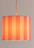 Callie is a light shade that brings a burst of colour with its orange and pink colour-clash stripe design. Perfect for a table lamp in your living room, bedroom or hallway, this shade adds an eye-catching contrast. The colour-matched inner gives it an extra touch of luxury, elevating its style and quality. Wherever you choose to use this shade, Callie is will have your space glowing with vibrant charm.