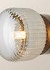 The Calpe flush wall light combines compact design with elegant finishes. Featuring a ribbed glass globe that diffuses light softly, it sits close to the wall, making it ideal for smaller spaces or as an accent light. Available in matte black with smoked glass or antique brass with clear glass, it suits a wide range of interiors. Use individually or as part of a coordinated scheme with other Calpe lights for a joined-up design. Bulb Required: G9