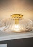ValueLights Calpe Large Brass Ceiling Light Ribbed Smoked Shade
