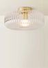The Calpe large flush ceiling light combines a low-profile design with stylish detailing. Featuring ribbed glass that diffuses light for a softer effect, it sits close to the ceiling, making it ideal for rooms with lower heights or where space is at a premium. Available in matte black with smoked glass or antique brass with clear glass, it offers versatile styling to suit a range of interiors. Pair with other Calpe lights for a coordinated lighting scheme. Bulb Required: E27