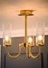 The Canya chandelier ceiling light combines ribbed glass shades with a contemporary frame for a refined finish. Designed to cast a soft, diffused glow, it works well as a central light in dining rooms, living spaces or hallways. Available in brushed gold or matte black, the Canya chandelier offers flexibility to suit a variety of interiors. As part of the wider Canya family, it can be paired with matching wall lights and other designs for a cohesive lighting scheme. Bulb Required: G9