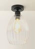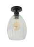 ValueLights Cheltenham Matte Black Flush Ceiling Light Ribbed Shade