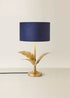 ValueLights Christina Gold Palm Leaf Table Lamp Navy Velvet Lampshade