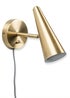 Suiting any living room, bedroom or reading nook this plug in wall light features statement metal in a brushed brass finish. Perfect for a classic look that will fit in with both modern and traditional interiors. This timeless design light features an adjustable cone head which makes it easy to direct the light where required. The perfect task lamp for use in your home office, student accommodation, for reading, homework and other tasks. Requires 1 x LED 5W GU10 bulb (not included).