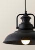 Industrial style curved ceiling pendant light fitting in a matt black metal finish. Ideal for use in bedrooms, hallways, dining rooms, living rooms, and kitchens. Ceiling lights are usually the main source of illuminating a room but with the many styles on offer today, also become a main focal point or talking point. The right fitting can make a real style statement and complete your living space look. Bulb Required: E27