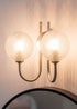 Introduce a contemporary element to your home décor with this dual wall light fitting. Suiting any living room, bedroom or bathroom this light fitting features statement chrome metal with two textured glass lampshades. With a perfect balance of style and functionality, this light brings a touch of modern sophistication to any space. This light looks just as effective switched off as it does on. Requires bulb with G9 fitting