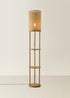 Update your living space with the latest trends in lighting. Mixing quality materials and stylish designs, our range of products are perfect for adding a modern style to your home. This floor lamp comes in a natural wooden finish and features a 3 tier shelf design base, ideal for displaying ornaments, pictures and other decorative items. Complete with a bamboo lampshade, adding warmth and depth to your décor. Its simple yet practical design will add a minimalist touch to your living space. Requires bulb with E27 fitting