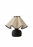 Elevate your interior with the Emilia Black Table Lamp, featuring a striking wave-design shade and a sleek round black ceramic base. The bold black trim and elevated fabric cable add a touch of luxury, making this lamp a standout piece in any room. Perfect for modern or classic interiors, Emilia delivers both warm ambient light and high-end style. It's more than a lamp, it's a designer vibe. Bulb Required: E27