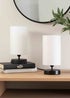 The Francis matte black touch table lamp is an understated design with a white shade in a cylinder shape with touch technology. Requires bulb with E14 fitting