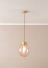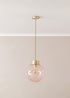 ValueLights Frenchie Pink Glass Globe Brushed Gold Capped Ceiling Light