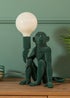 Add some character and charm to your home with this detailed monkey table lamp. Complete in a dark green velvet finish, this lamp is sure to be a showstopper that will brighten any room. The in-line rocker switch provides convenient control, making it easy to illuminate your space. This table lamp is a unique piece of lighting that will add a touch of personality and style, transforming your room in seconds. Requires 1 x LED 4W ES E27 bulb (not included).