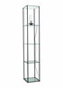 The Gobie clear glass shelved floor lamp in black is the ultimate crossover between the smart decision and the stylish one. A narrow shelving unit with built in lighting component, so you don't have to decide between storage and lighting and you can make your lighting your own. Requires bulb with E27 fitting