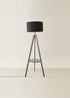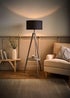 ValueLights Grey Wood Tripod floor Lamp with Drum Lampshade