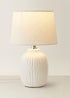 Learn moreIntroducing Harrison, the table lamp that brings effortless style to any room! With its glossy white finish and geometric ribbed design, it’s a real statement piece. The colour-matched fabric cable keeps things coordinated, while the brushed chrome cap offers a modern edge and levels up the quality. Topped with a soft linen shade, Harrison combines cosy lighting with contemporary flair. Available in small, medium, and large, it’s the perfect choice for any space looking for a little extra glow.