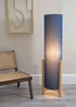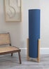 The Henry midi floor lamp in navy is a free standing floor lamp with a long drum shade for the body and four wooden legs. It comes with a foot switch on a 180cm cable. Requires bulb with E27 fitting