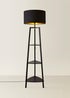 ValueLights Hiru Black 3 Tier Shelf Floor Lamp with Metallic Gold Inner Shade
