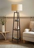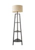 ValueLights Hiru Black 3 Tier Shelf Floor Lamp with Natural Drum Shade