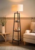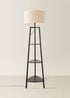 ValueLights Hiru Black 3 Tier Shelf Floor Lamp with White Trim Linen Shade