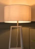 Update your living space with the latest trends in lighting. Mixing quality materials and stylish designs, our range of products are perfect for adding a modern style to your home. This floor lamp comes in a wooden finish and features a 3 tier shelf design base, ideal for displaying ornaments, pictures and other decorative items. Complete with an extra large fabric lampshade. Requires 1 x LED 6W ES E27 bulb (not included).