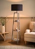 ValueLights Hiru Grey 3 Tier Shelf Floor Lamp with Black Drum Shade