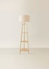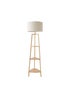 ValueLights Hiru Natural 3 Tier Shelf Floor Lamp with White Trim Linen Shade