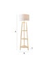 Update your living space with the latest trends in lighting. Mixing quality materials and stylish designs, our range of products are perfect for adding a modern style to your home. This floor lamp comes in a wooden finish and features a 3 tier shelf design base, ideal for displaying ornaments, pictures and other decorative items. Complete with an extra large fabric lampshade. Requires 1 x LED 6W ES E27 bulb (not included).