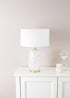 The India confetti glass table lamp in white takes the simplicity and timelessness of a classic lamp silhouette and injects some fun with confetti into the glass. Bulb Required: E27