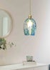 The India confetti glass pendant shade in green is the perfect way to make the most of a high ceiling. The glass material allows light to pass through, whilst the confetti pattern plays with the light for a beautiful effect. Requires bulb with B22 / E27 fitting