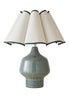 Introduce elegance to your living space with this green speckled table lamp. Featuring a ceramic base with a scalloped edge fabric lampshade in a natural finish with a matching green trim. This on-trend lamp is perfect for transforming your room in seconds. The in-line rocker switch provides convenient control, making it easy to illuminate your space. Requires 1 x LED 4W SES E14 bulb (not included).