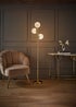 Pump up the glam with the Jas brushed gold floor lamp – a bold blend of sparkle and style! Featuring 3 dazzling confetti glass globes and a luxe brushed gold finish, this statement light brings instant wow to any room. Mix and match with the Jas or India lighting ranges for a custom look. Perfect for lounges, hallways or anywhere that needs a glow-up. Just add 3 G9 bulbs and let the Jas magic shine!