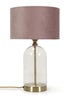 Add a timeless addition to your home with this gold table lamp. Featuring a glass base with a simple, modern design that complements any decor. Whether your style is vintage or minimalist, this lamp will fit perfectly into any room in your home. Complete with a velvet lampshade. This product features an in-line on/off rocker switch making it easy to turn the light on. Requires 1 x LED 4W ES E27 bulb (not included).