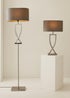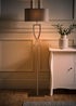 This large floor lamp combines a sleek, contemporary design with industrial elements to create a striking lighting fixture. Complete with an oval fabric lampshade, this lamp is sure to be a showstopper that will brighten any room. The in-line foot switch provides convenient control, making it easy to illuminate your space. Requires 1 x LED 6W ES E27 bulb (not included).