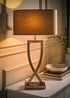 This large table lamp combines a sleek, contemporary design with industrial elements to create a striking lighting fixture. Complete with an oval fabric lampshade, this lamp is sure to be a showstopper that will brighten any room. The in-line rocker switch provides convenient control, making it easy to illuminate your space. Requires 1 x LED 4W ES E27 bulb (not included).