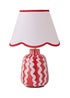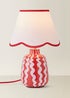 ValueLights Katy Pink & Red Wiggle Stripe Table Lamp with Scallop Shade
