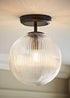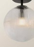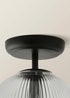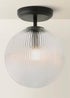 ValueLights Kempton Black Flush Ceiling Light Ribbed Globe Shade