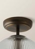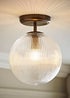 ValueLights Kempton Brass Flush Ceiling Light with Ribbed Globe Shade