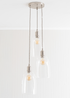 Transform your space with this brushed chrome 3-drop cluster ceiling light, featuring three elegant Kira glass dome shades. The light is allowed to glow freely from the glass shades, while the brushed chrome finish brings a touch of sophistication. Whether you’re entertaining guests or enjoying some quiet time, this light brings effortless style to any room. Ideal for kitchens, dining areas, or any space that needs a little extra shine. Caution: may cause uncontrollable admiration from guests!