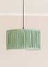 Practically perfect in every way, this pleated drum shade is the pendant your ceiling light / lamp base has been crying out for. The gathered pleats give the shade a pleasing tactile texture and the faux silk fabric has a luxurious sheen. Effortlessly elegant, the Jess pendant shade fits into the quiet luxury trend without breaking a sweat. Available in two sizes and three pastel colourways, pink, green, and blue. Small: Height: 15cm x Width: 25cm. Large: Height: 20cm x Width: 35cm.