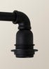 Vintage and industrial style 5 way straight bar design pipework ceiling light fitting in a satin black metal finish. Ceiling lights are usually the main source of illuminating a room but with the many styles on offer today, also become a main focal point or talking point. This unique light will make a real style statement and complete your living space look. Ideal for dining rooms, kitchens and other living areas. This light allows you to pair with shades of your choice to suit your decor. Bulb Required: E27