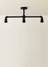 Vintage and industrial style 3 way pipework ceiling light fitting in a satin black metal finish. Ceiling lights are usually the main source of illuminating a room but with the many styles on offer today, also become a main focal point or talking point. This unique light will make a real style statement and complete your living space look. Ideal for dining rooms, kitchens and other living areas. Bulb Required: E27