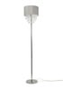Designed with a chrome stand this floor lamp features a grey drum lampshade with clear jewel droplets hanging from underneath the shade. The intricate detailing is perfect for adding a luxurious feel to your home. It emits a soft, ambient light, perfect for creating a warm atmosphere in your home. Transform your room easily with this elegantly crafted lamp. Requires 1 x LED 6W ES E27 bulb (not included).