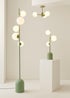 The Marlow sage green three way table lamp with glass globe shades adds dimension to any space with a triple light source design. The sage green finishes and glass globe shades are suited to any modern home looking for a pop of colour, or a hint of an art deco feel. Requires bulb with G9 fitting