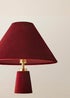 Add a healthy dose of drama and luxury with the Martha velvet conical table lamp. Available in rich teal or burgundy, this statement lamp features a plush velvet finish and gleaming gold accents for a dramatic, opulent vibe. The colour-matched cable adds a chic twist of elegance, making every detail count. Style it solo or pair with the matching Martha floor lamp for a layered lighting look that's glamorous, playful, and totally on-trend. Bulb Required: E14
