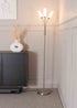 The Maya three way floor lamp in brushed chrome is a modern floor lamp with three spanning stems with tubular shades. The perfect addition to any living room, home office or bedroom. Requires bulb with G9 fitting
