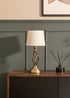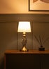 Brighten up your living space with this elegant table lamp collection. Statement metal combines with a fabric shade for a classic look that will fit in with both modern and traditional interiors. With a twisted design base and a timeless neutral shade, ready to class up any interior. Requires 1 x LED 4W SES E14 bulb (not included).